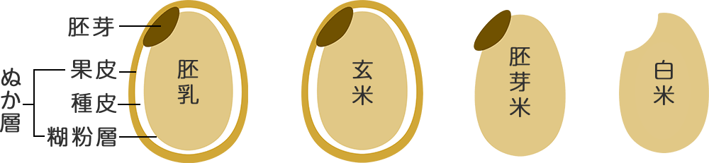 一口で言えば、「一粒づつの米の頭に総合ビタミン剤のカプセルをくっつけたもの」(女子栄養大学教授五明紀春氏著/「胚芽米のすべて」から)